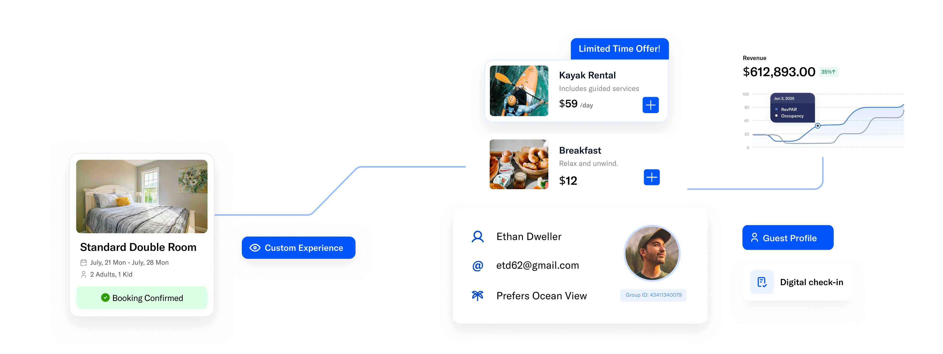 Mobile-optimized booking engine integrates with your website to capture direct reservations and reduce OTA dependency.