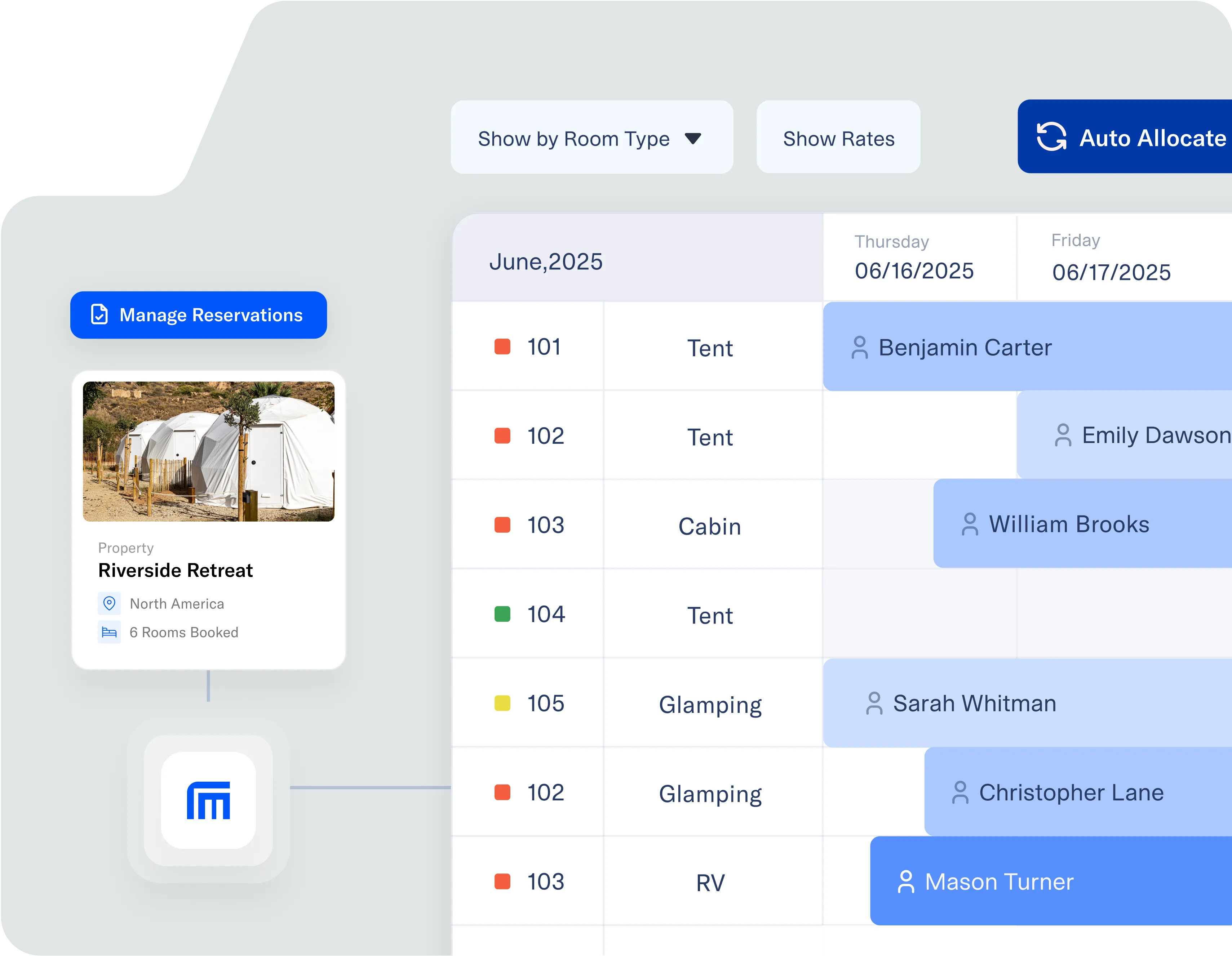 roommaster handles everything from tent sites to lodge rooms. Manage peak season surges, coordinate facilities across locations, and maintain the natural experience your visitors expect all in one platform.